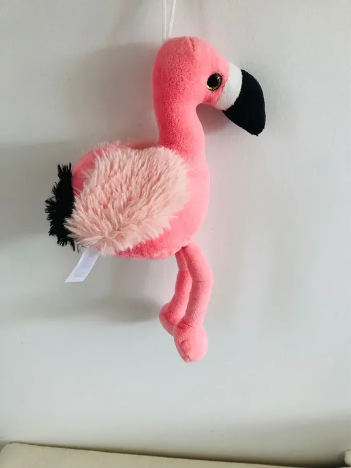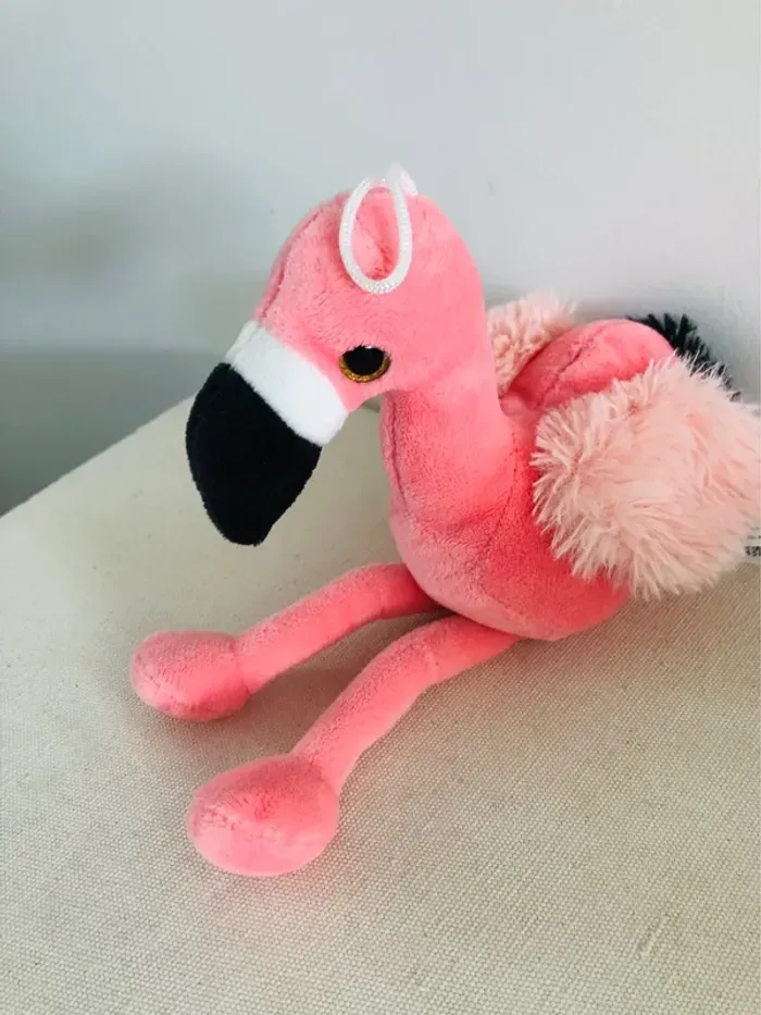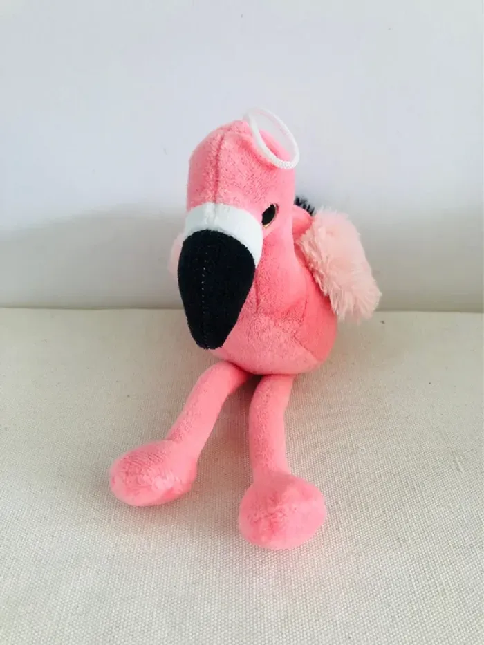 Flamant rose Peut être suspendu à un rétroviseur, un sac, etc Mot clé: bébé doudou enfant ours nounours doux douce blanc jeu jouet oiseau rose fille