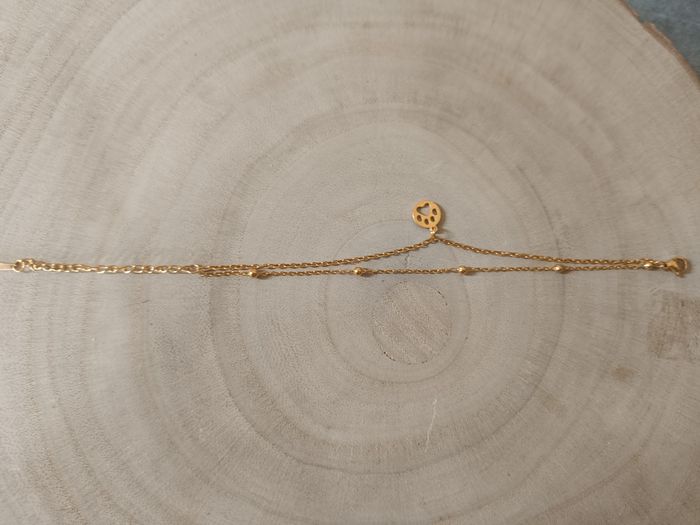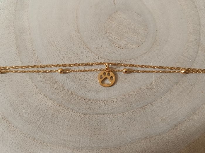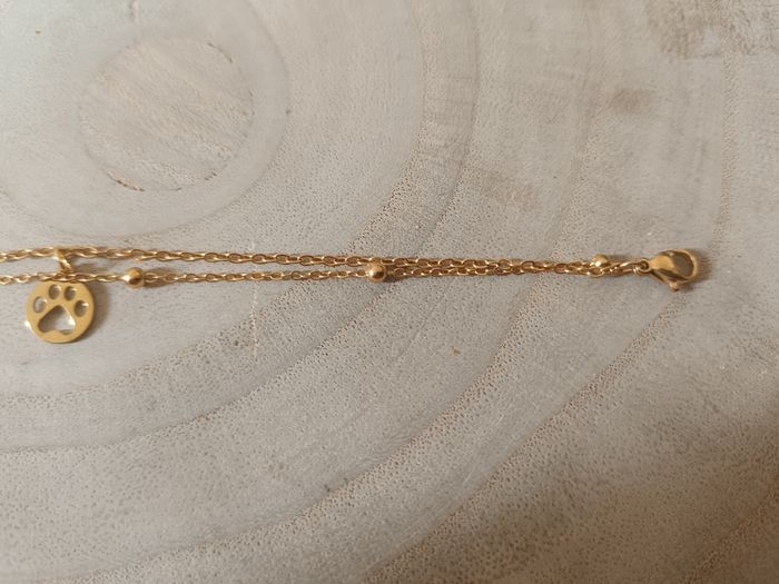 Bracelet double couleur doré avec une patte de chien jamais porté de la marque pattounes solidaires acier inoxydable