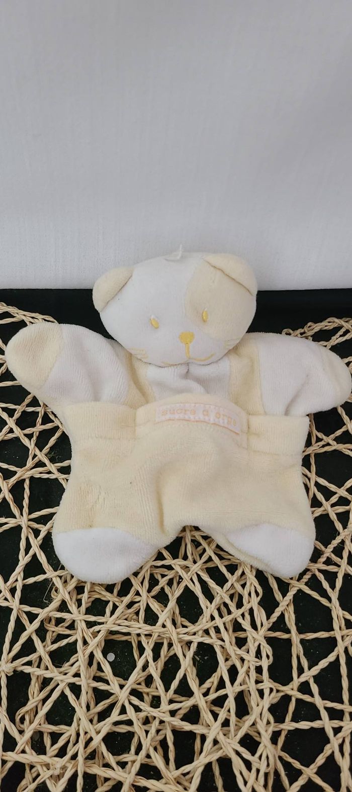 Doudou plat chat blanc jaune SUCRE D'ORGE - photo numéro 1