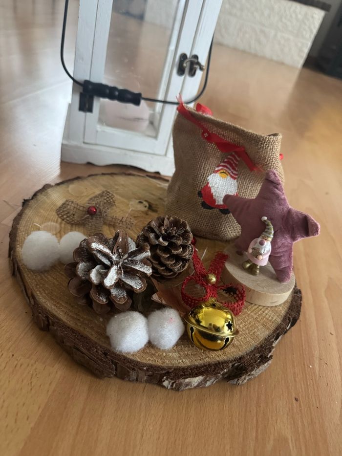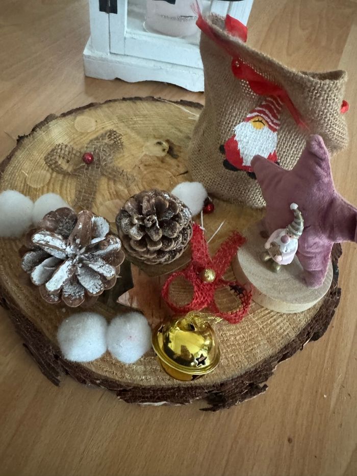 Je vends ce rondin de bois décoré pour Noël, avec de jolis éléments festifs, vous pouvez en rajouter