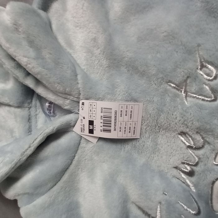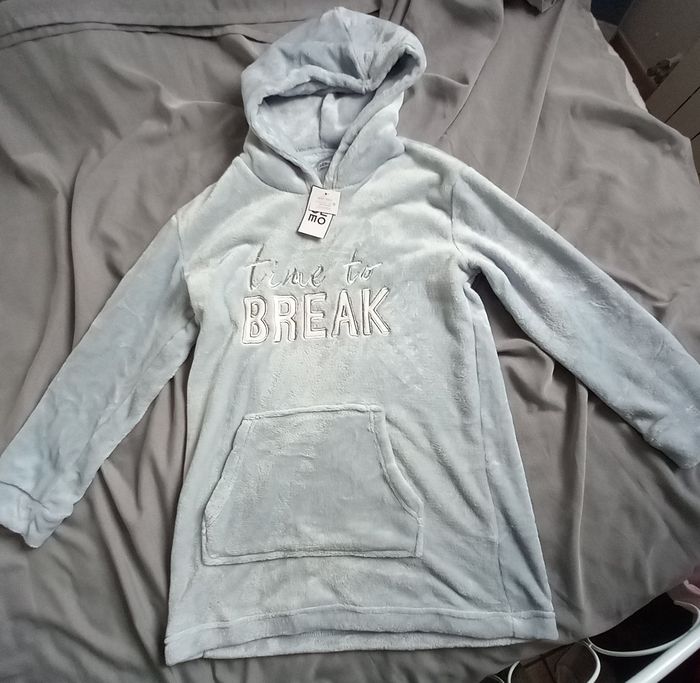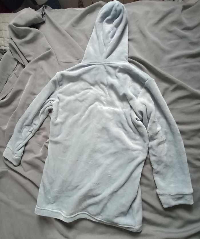 - Sweat capuche Gémo, manches longues, resserrées au bout, à enfiler, inscription brodée, toucher doux, coloris bleu ciel, composition 100% polyester, poche kangourou