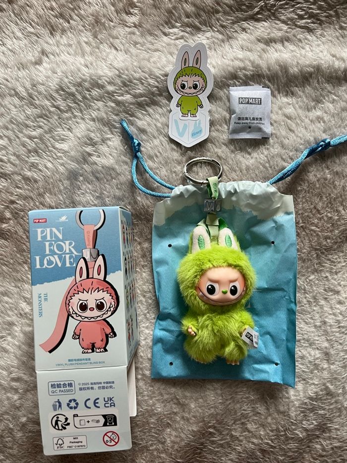 Labubu pin for love lettre V Article authentique et neuf Envoie rapide et protégé Qr code qui authentifie l’article Si vous avez des questions n’hésitez pas