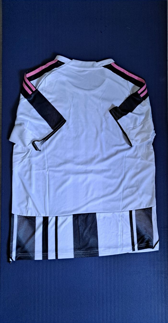 Superbe maillot de la Juventus signé Adidas, avec les détails roses sur les épaules et le logo 🩷