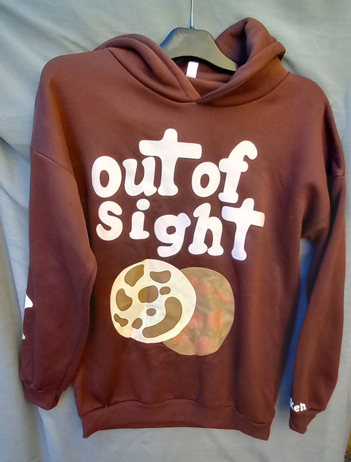 - Sweat capuche, manches longues, dessin et inscription imprimés, intérieur doux, bas de manches et sweat resserrés, étiquette de composition coupée largeur épaules 64 cm - aisselles 60 cm, longueur épaule-bas = 71 cm et aisselle-bas = 49 cm, longueur manches 52 cm