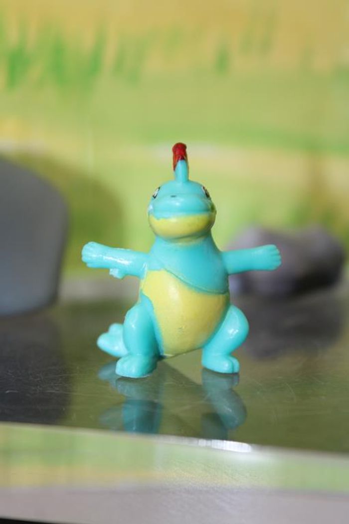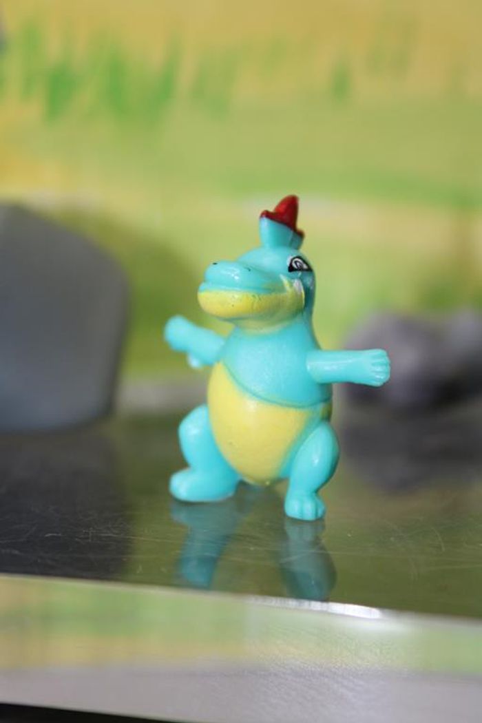 Figurine représentant Crocrodil un pokemon de 2 ème génération du monde de Johto Crocrodil ressemble à un crocodile et à un homme primitif, car les motifs bleus sur son ventre jaune font penser à une sorte de peau de bête tachetée. Il a également des écailles rouges sur sa tête et sur son dos. Il a de grands pieds, et des mains aux cinq doigts griffus. Taille environ 2/3 cm Marque : PK china En très bon état Réponds avec plaisir aux demandes d'informations complémentairre Réponse rapide envoi soigné dans les meilleurs délais