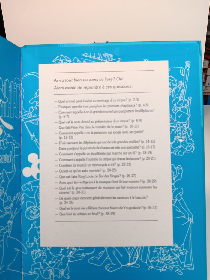 Livre vintage Walt Disney Jouons à apprendre J'aime le cirque 41 pages Avec questionnaire a la fin du livre