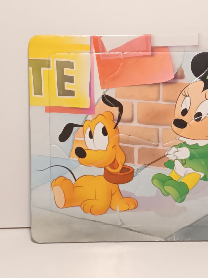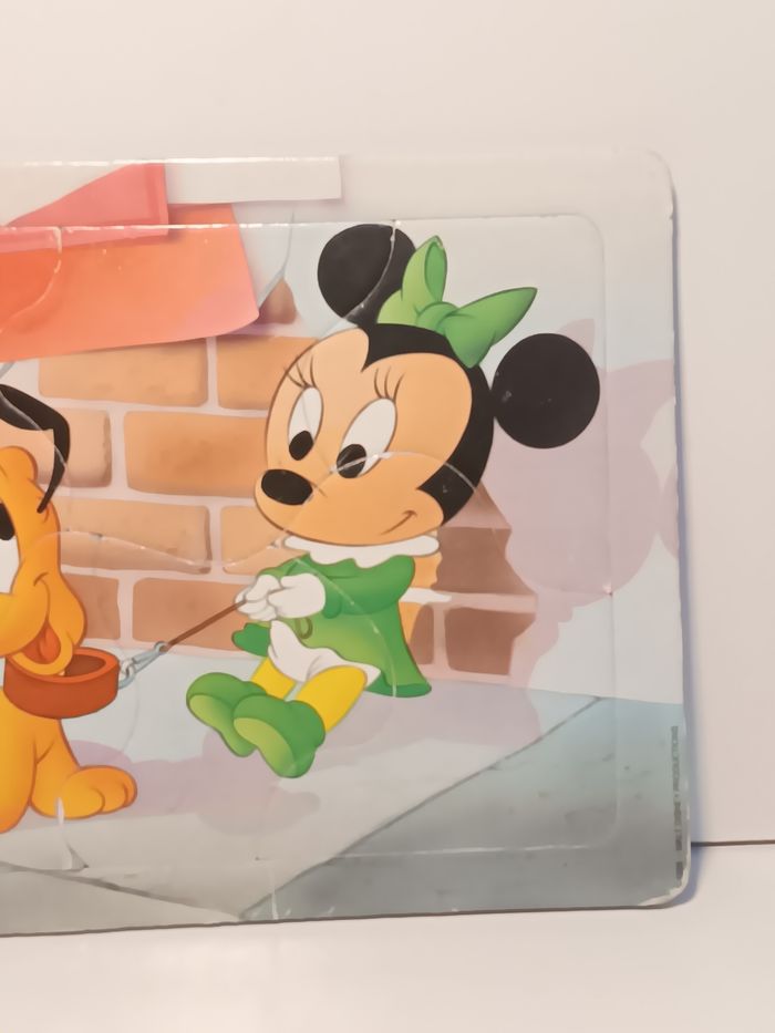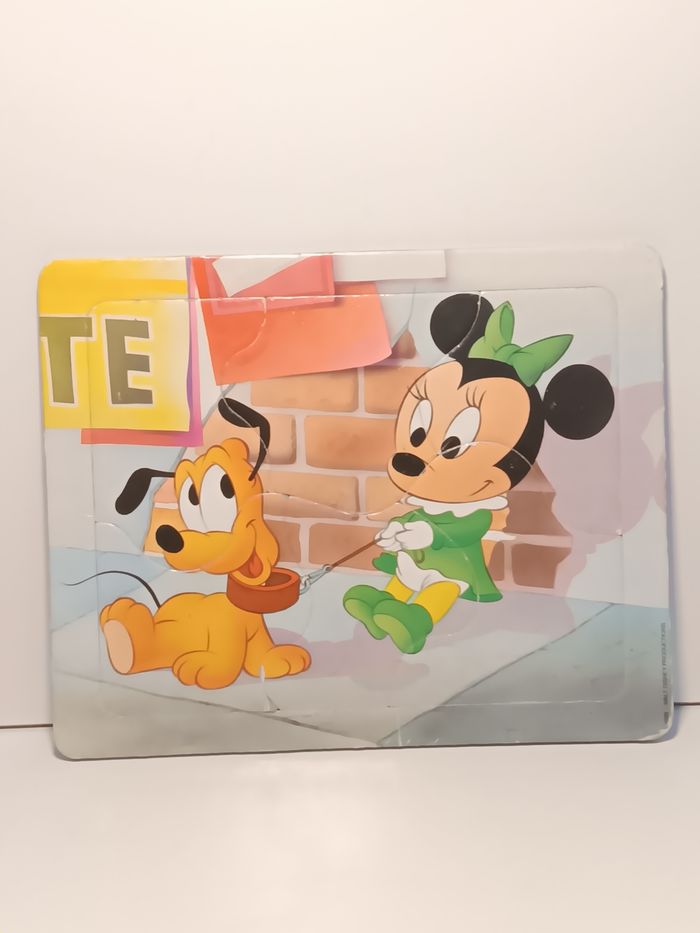 Puzzle vintage 1986 Walt Disney sur plaque Minnie et Pluto bebe