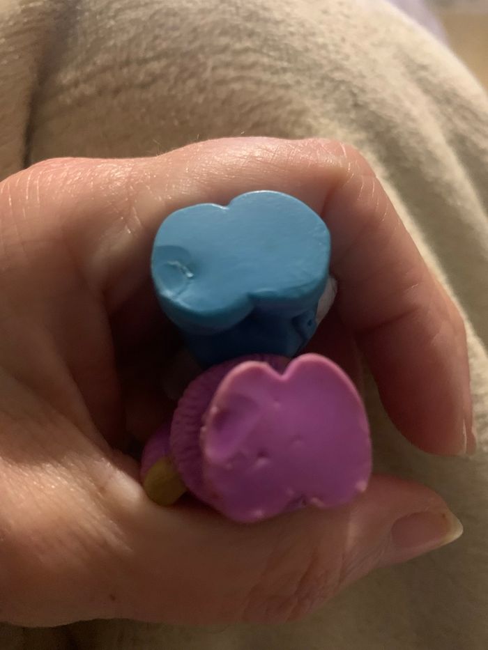 Manque un peu de couleur aux niveaux niveau des coeurs L’ours fushia est abimé dans le dos ( voir photo) Les 2 sont abimés en dessous ( voir photo) Envoi rapide et soigné sous protection