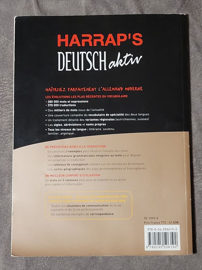 Bonjour, Je vends ce livre nommé - Harrap's Universal - Allemand-Français / Français-Allemand Harrap's Universal - en bon état. Si vous rechercher un livre ou un acteur en particulier et pour gagner du temps, n'hésitez pas à me le demander, je vous répondrais dès que possible 😇 Veuillez vous abonner pour recevoir toutes les nouveautés Pour autres infos n'hésitez pas à me contacter. ***** Merci de votre visite *****