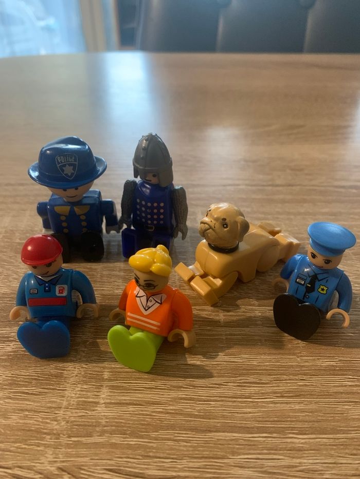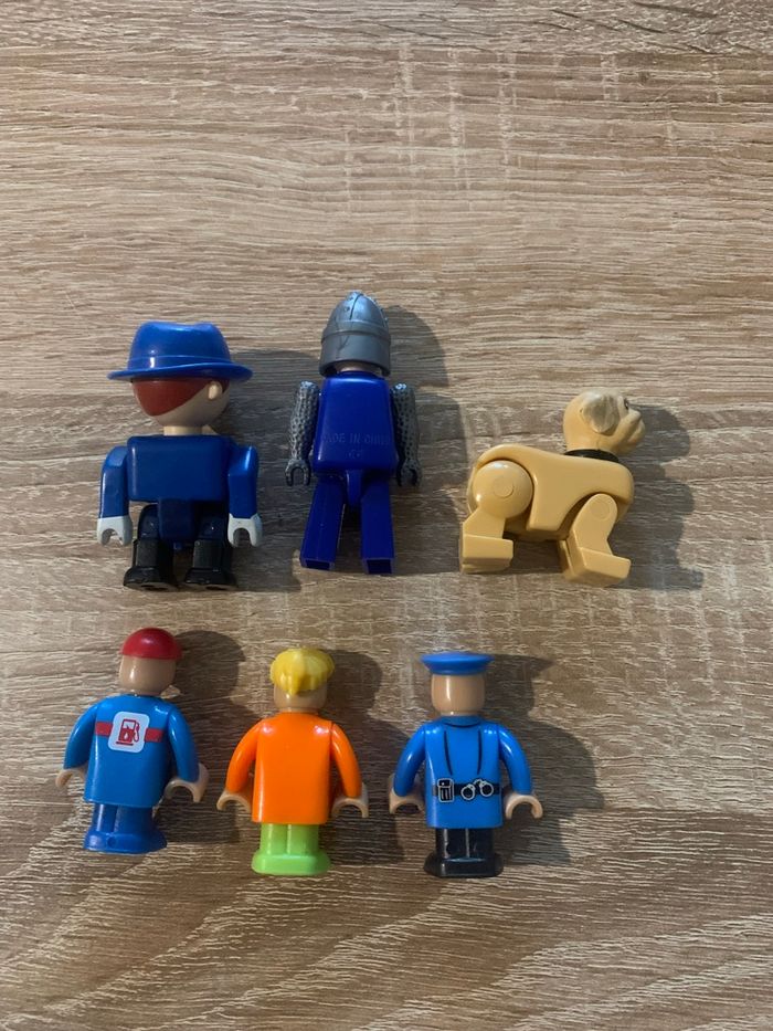1 figurine policier mesure environ 6 cm 1 figurine chevalier mesure environ 6,5 cm 3 petites figurines mesure environ 4,5 cm 1 chien mesure environ 4 cm ( manque la queue) Envoi rapide et soigné sous protection