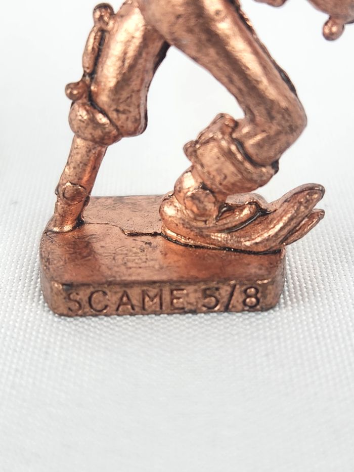 Rare figurine de collection en métal représentant un Pirate de l'univers Kinder Surprise. Elle fait partie des célèbres figurines des années 80 et est dans une finition cuivrée/brunie. Idéal pour les collectionneurs de jouets Kinder vintage et les amateurs de pirates. Marque : Kinder Surprise Thème : Pirate Période : Années 80 (Vintage) Matière : Métal (finition brunie) Dimensions : Environ 4 cm de hauteur État : Très bon état général. 📦 Expédition rapide et soignée sous 24 à 48 heures ouvrées. 🚚 N'hésitez pas à consulter mes autres articles en vente pour bénéficier d'un envoi groupé.