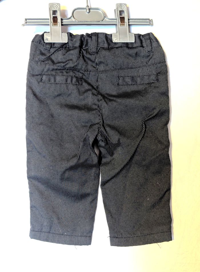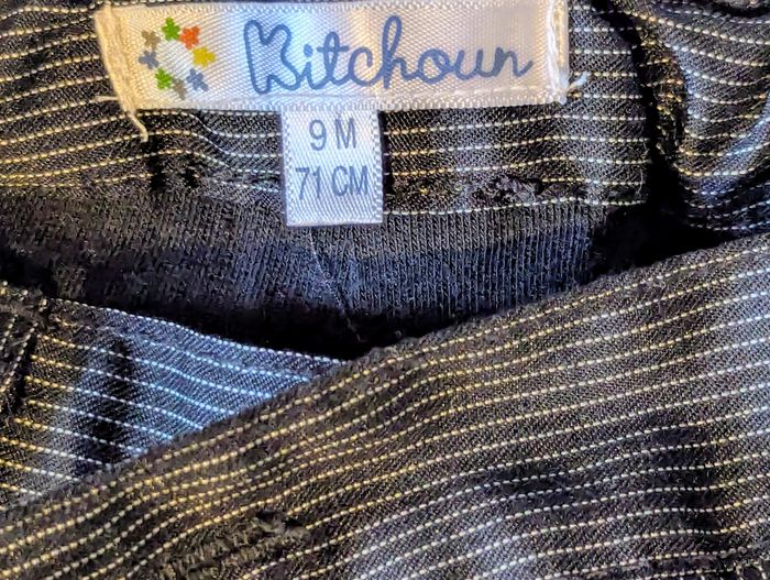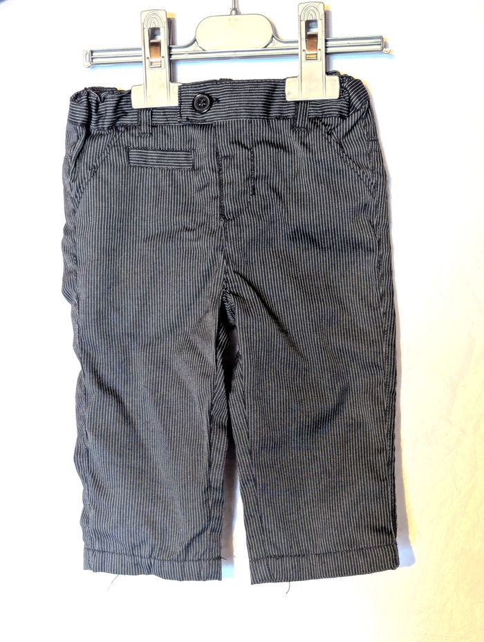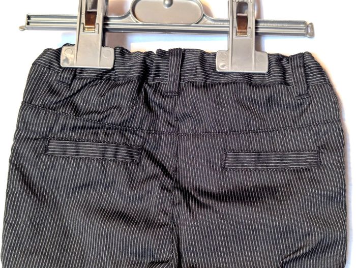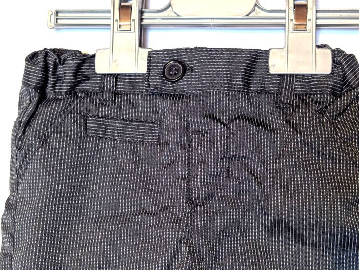 Pantalon "Kitchoun" Noir avec des Fines Rayures Verticales Blanches.
