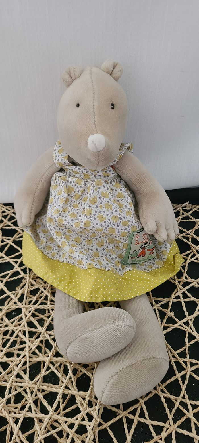 Doudou Apolline la taupe MOULIN ROTY La Grande Famille robe gris jaune