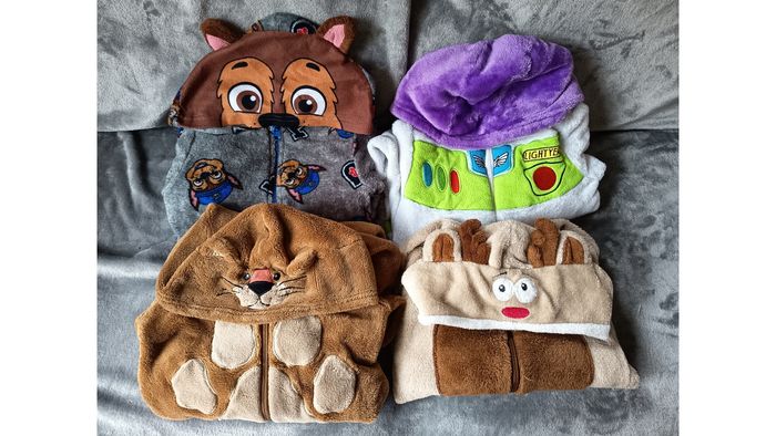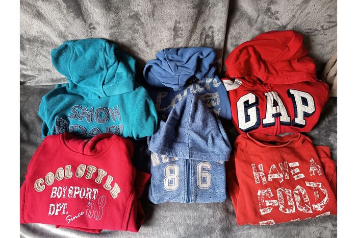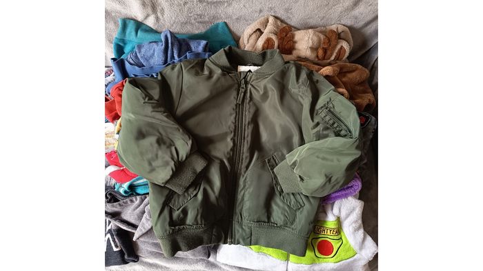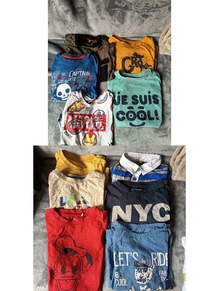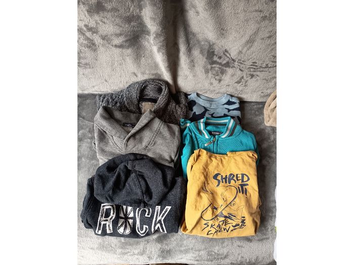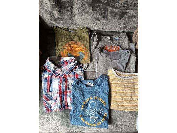 Lot 5 ans 48 pièces 1 doudoune 1 bombers 1 veste en daim 1 débardeur 4 Tshirt manches courtes 1 chemise manches courtes 20 t-shirts manches longues 2 chemises manches longues 12 pulls et vestes 4 pyjama combi dont un pat patrouille et un buzz l'éclair ( le buzz a été beaucoup utilisé) 1 manteau d'hiver sergent major Diverses marques, certaines pièces plus portées que d'autres