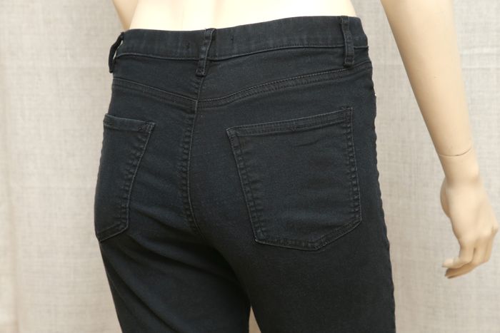 Plus d'étiquette! 34cm à la taille 74cm entrejambe au bas 97cm de longueur de jambe Je dirais un 34/36.. Bon état, juste les coutures poches arrières qui se sont un peu décousues
