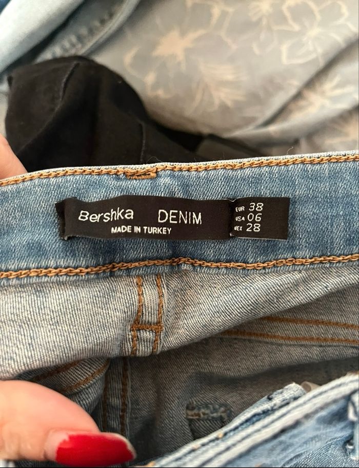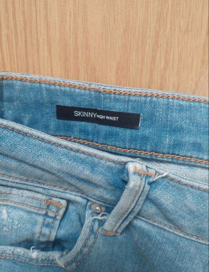 Jean bleu délavé destroy skinny High Waist Bershka Denim T38 TBE 👖 - photo numéro 3