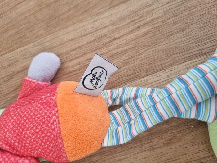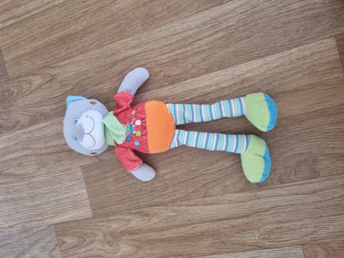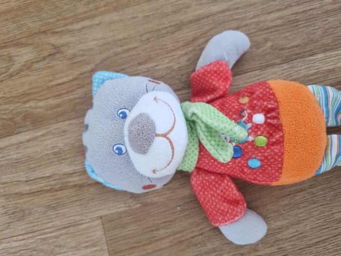 Peluche chat gris motif multicolore Mots d'enfants 31 cm