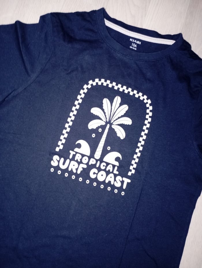 Tee-shirt bleu marine motif palmier Kiabi T. 10 ans
