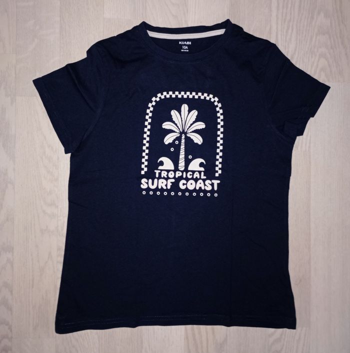 Tee-shirt bleu marine motif palmier Marque : Kiabi T. 10 ans Très bon état général