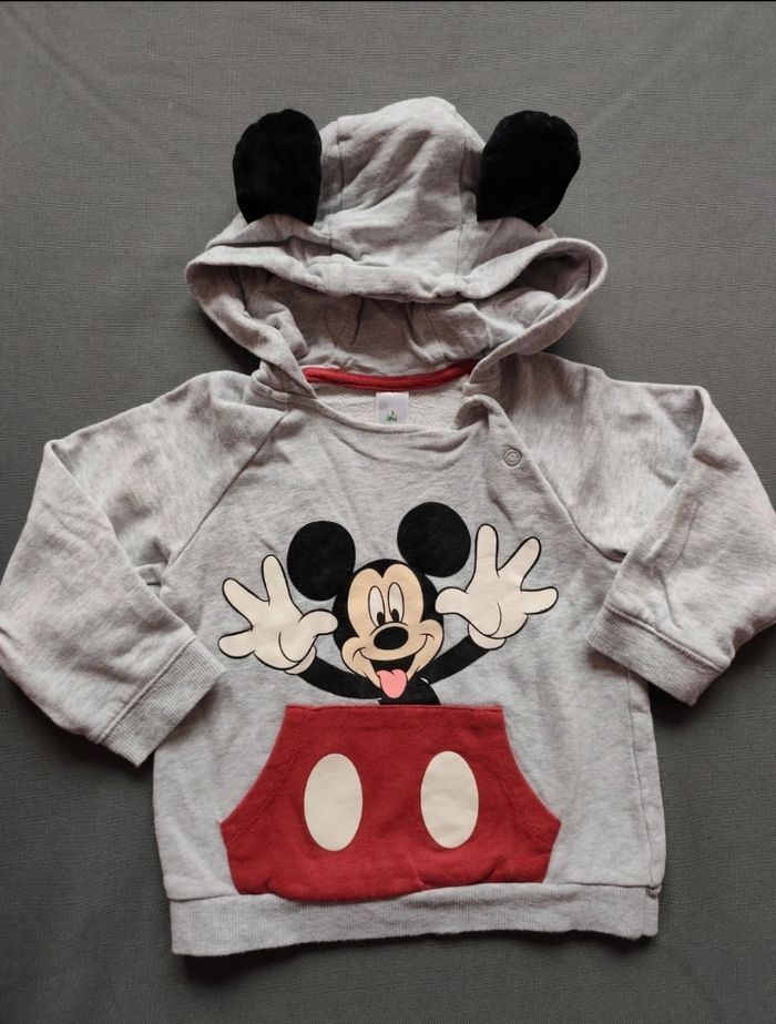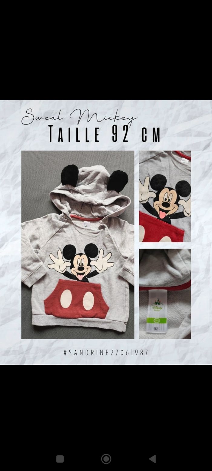 🧸Détail du vêtement 🧸 Sweat Mickey gris. Molletonné. Oreille en velours. Très bon état. Taille 92 cm mais je mets en 86 cm car taille petit.