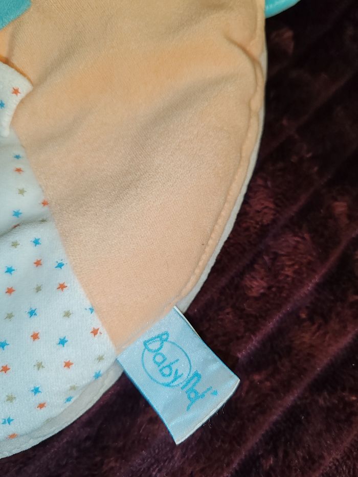 Doudou Ours Capucin Plat Bleu Orange BABY NAT’ Tbe Étiquette marque présente 9.90.euros Envoi en relais