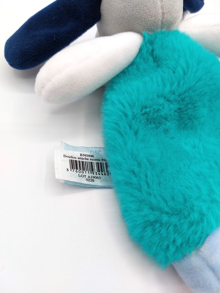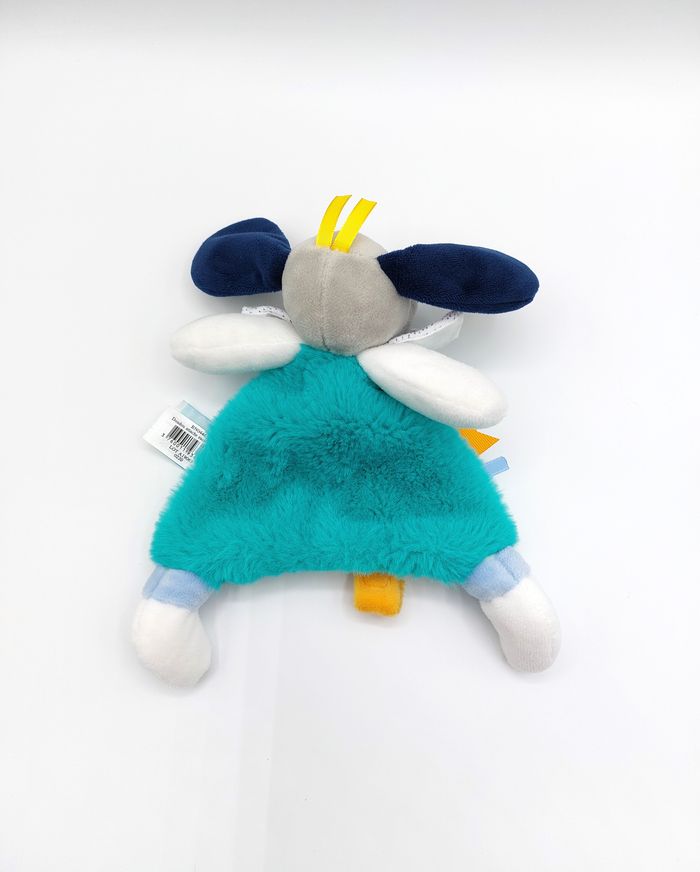 Doudou plat chien gris bleu Pépin BABY NAT BN0446 vert attache tétine jaune comme neuf - photo numéro 4