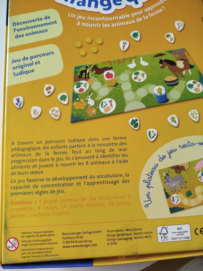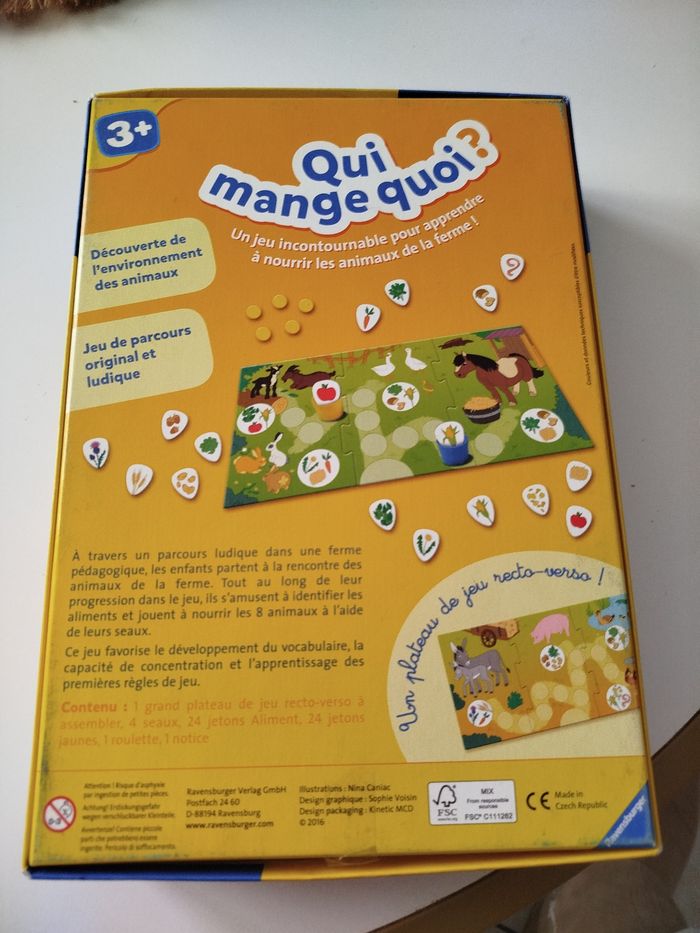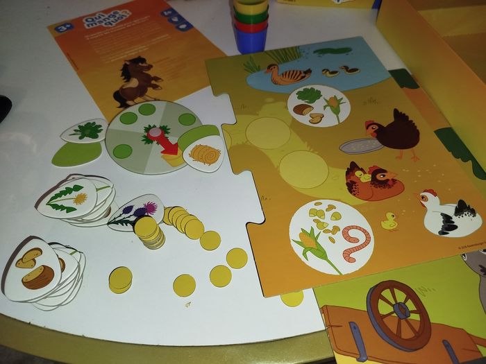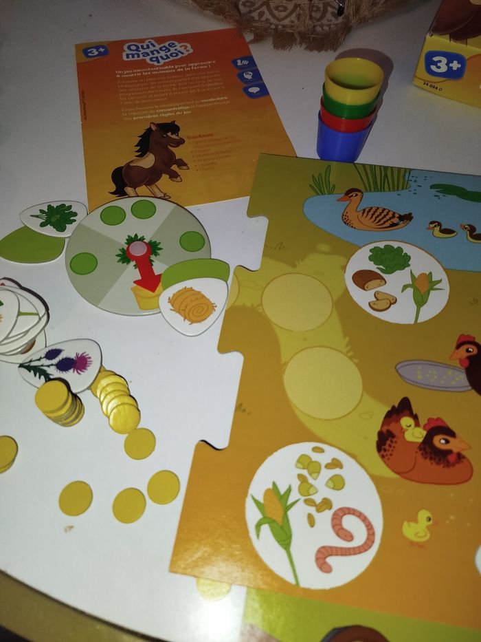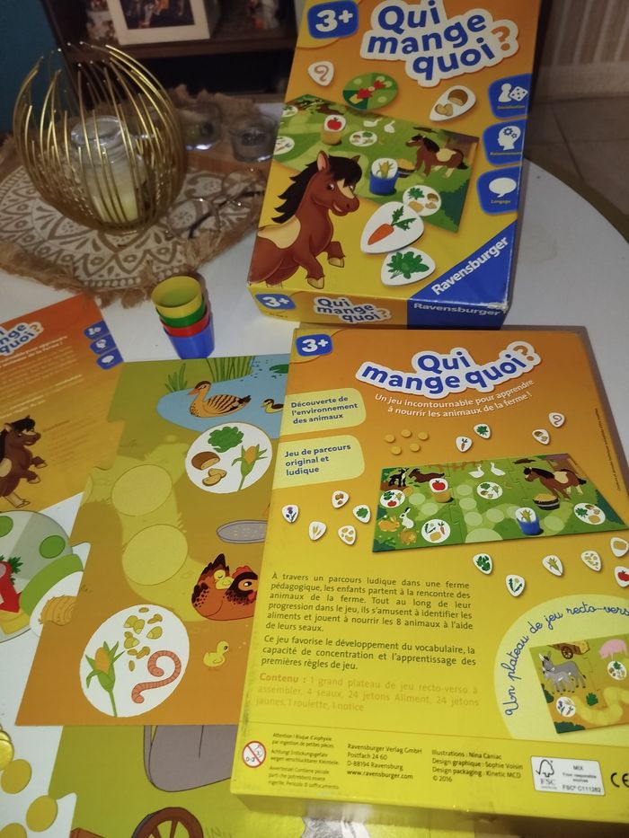 🐴🥕 Qui mange quoi ? – Le jeu préféré des petits fermiers en herbe ! 🌽🐔 Marque : Ravensburger 🧩 Âge : 3 ans et + Apprends à ton mini fermier que le cheval préfère les carottes et que le canard ne mange pas de frites 🍟😆 ! Un jeu tout mignon pour développer le langage, la logique et surtout… de grands éclats de rire ! 📦 Envoi rapide comme un cheval au galop 🐎 💛 Jeu complet et prêt à faire découvrir qui mange quoi à ton p’tit bout