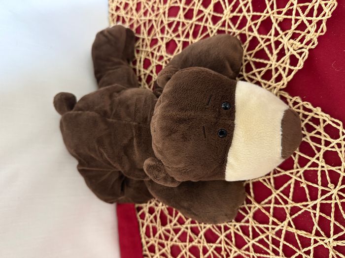 Doudou ours allongé marron écru soft friends - photo numéro 5