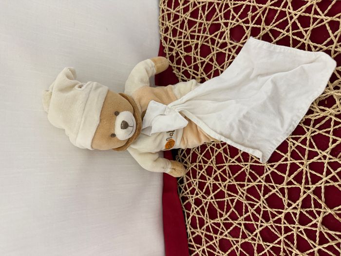 Ours BABY NAT doudou beige avec mouchoir dans le ventre - photo numéro 1