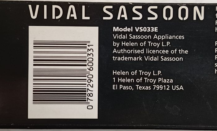 Vidal Sassoon Brosse Professionnelle VS033E Neuf jamais utilisé L'accessoire indispensable pour boucler et mettre en forme tous les types de cheveux 2 Niveaux de chaleur Embout froid Soies à pointes arrondies Cordon rotatif sur 360° Témoin lumineux de fonctionnement
