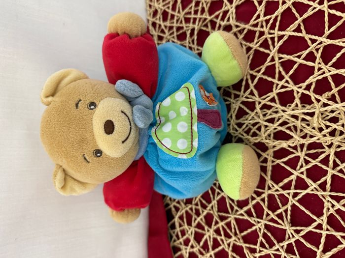 Doudou ours bleu rouge vert champignon colors KALOO - photo numéro 3