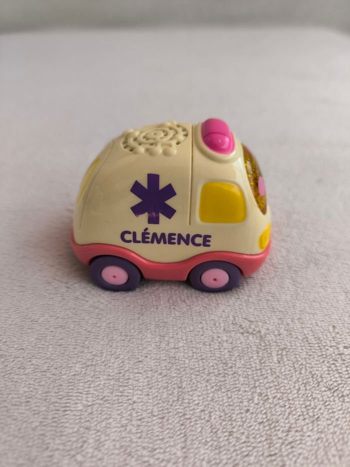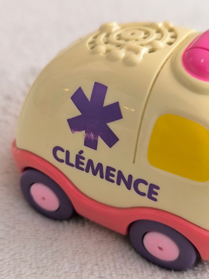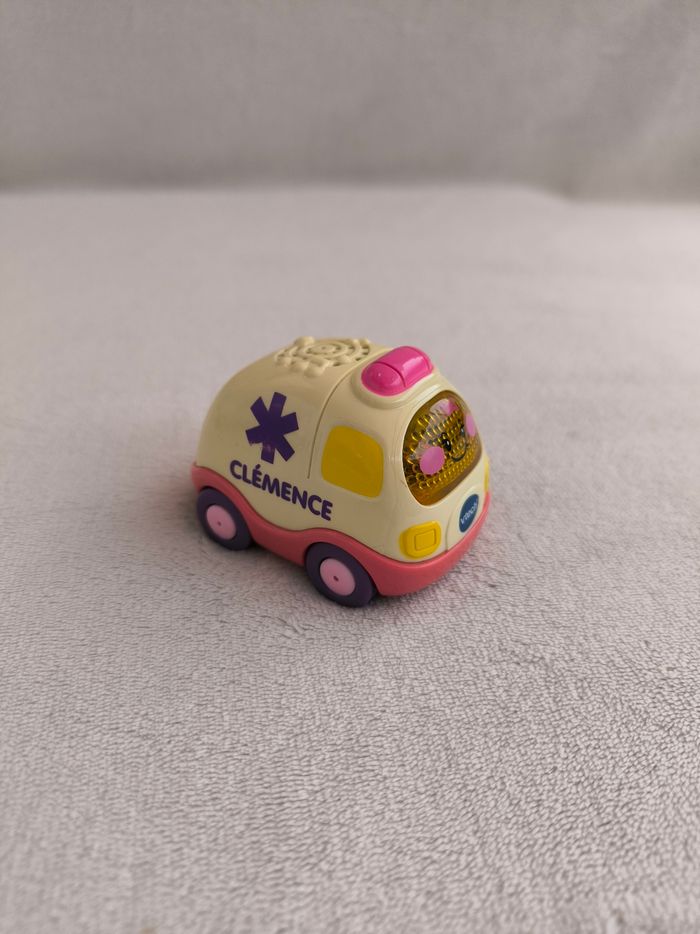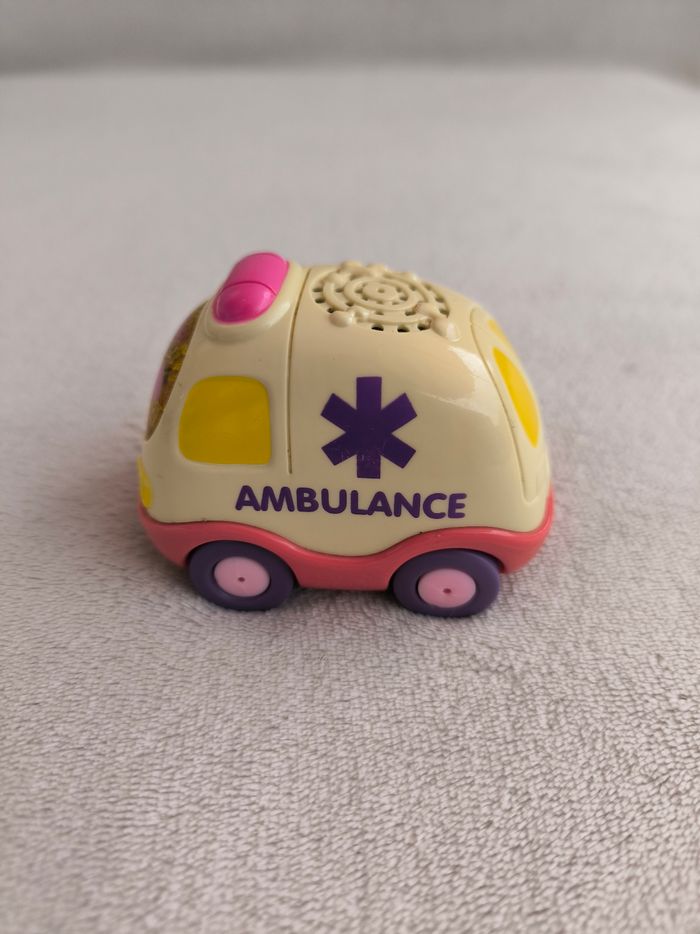 Tut Tut Bolides Clémence l'ambulance Vtech • Coloris blanc, rose • Parle et chante, visage lumineux • Pile incluse • Carrosserie légèrement rayée, coloris blanc jauni • Fonctionne difficilement en restant sur le bouton 🚕 D'autres Tut Tut disponibles 🚕 En état satisfaisant #evelyne_jeux