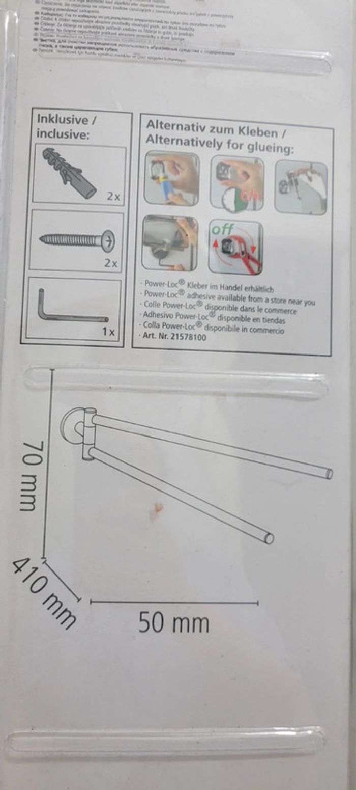 avec deux bras mobiles superposés offrent suffisamment de place pour deux serviettes. Fabriqué en acier inox mat haut de gamme massif, il n'est pas seulement stable, mais aussi utilisable à long terme. Des vis et des chevilles pour la fixation sont fournies.