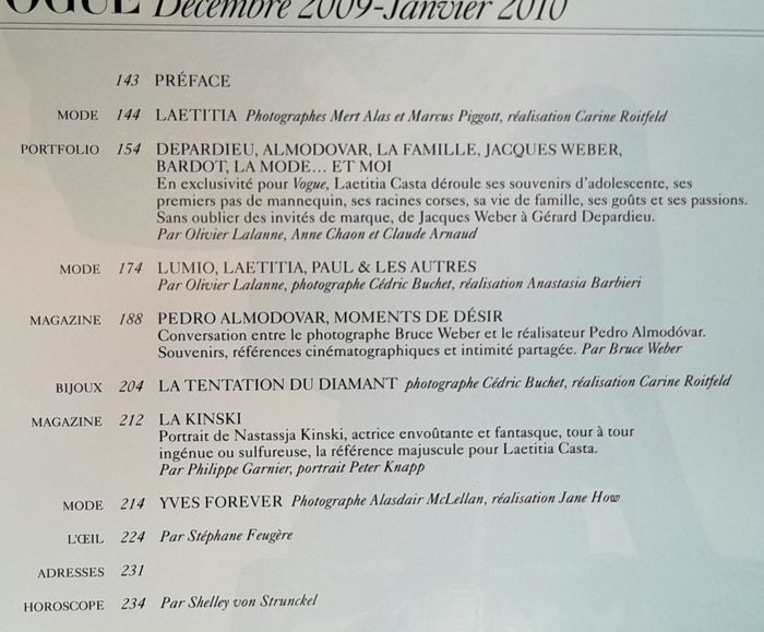 Magazine Vogue n°903 décembre 2009 janvier 2010 spécial Laetitia Casta - photo numéro 3