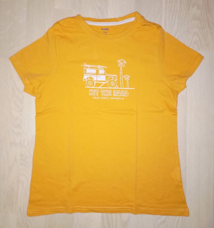 Tee-shirt orange clair motif safari Kiabi T. 10 ans NEUF