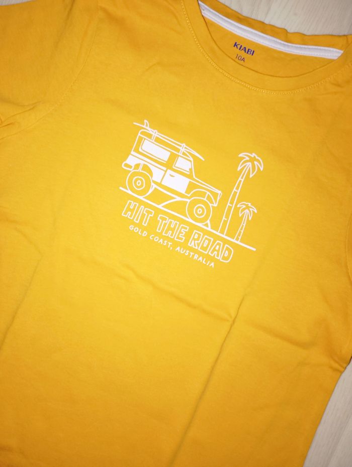 Tee-shirt orange clair motif safari Marque : Kiabi T. 10 ans NEUF jamais porté juste lavé