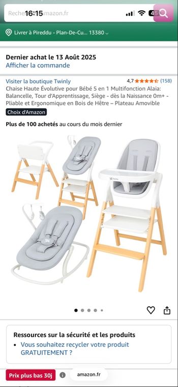 Chaise haute Marque Stokke avec housse de transport et assise tissu