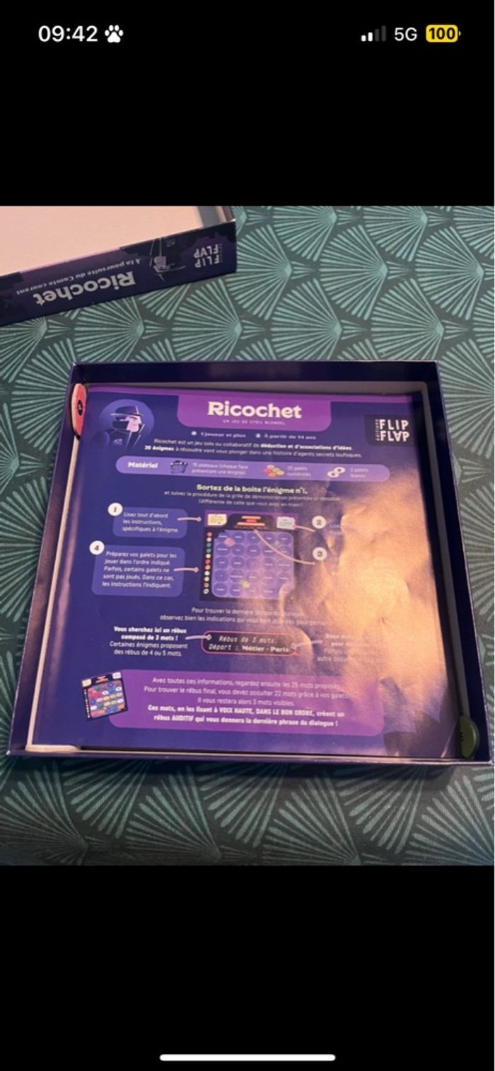 Jeu Ricochet collaboratif de déduction et d’association d’idées 30 énigmes à résoudre en ricochant avec les mots À partir de 14 ans - 1 joueur et plus ⚠️COMPLET⚠️ Comme neuf !! Se vend encore 30€ sur Amazon