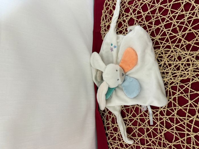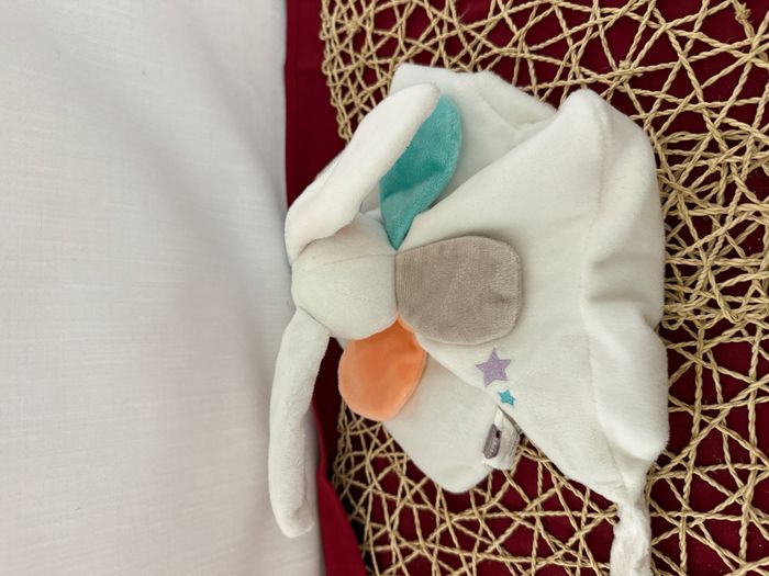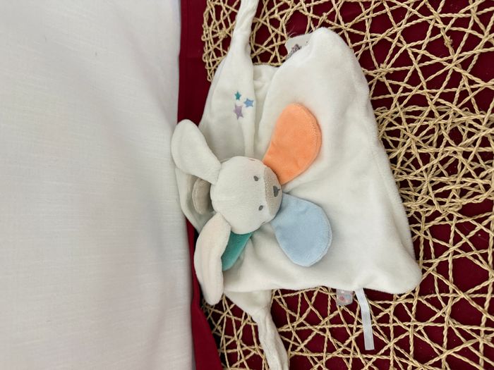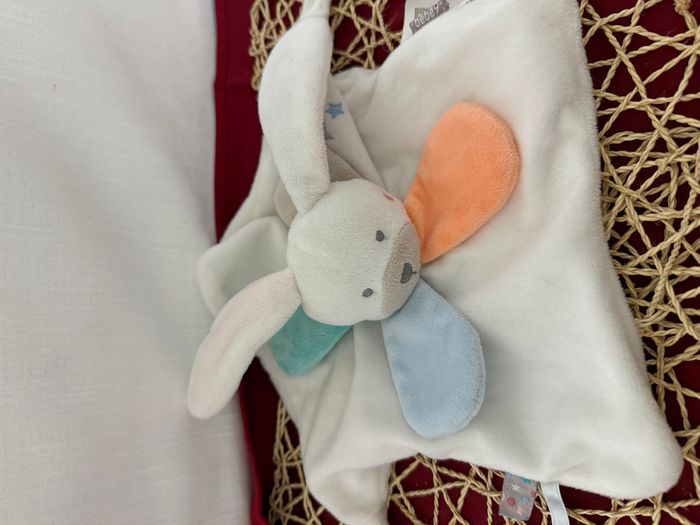 Doudou plat Lapin blanc étoiles pétales colorés Bébé 9 - photo numéro 1