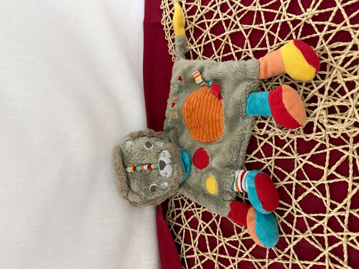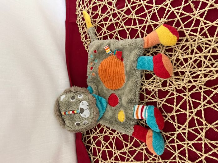 Doudou plat lion SIMBA TOYS gris cercle orange bandana bleu Nicotoy - photo numéro 4