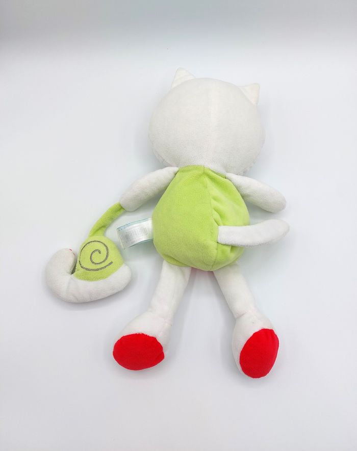 Peluche d’activité doudou chat blanc vert rouge escargot BABY NAT grelot Babynat - photo numéro 2