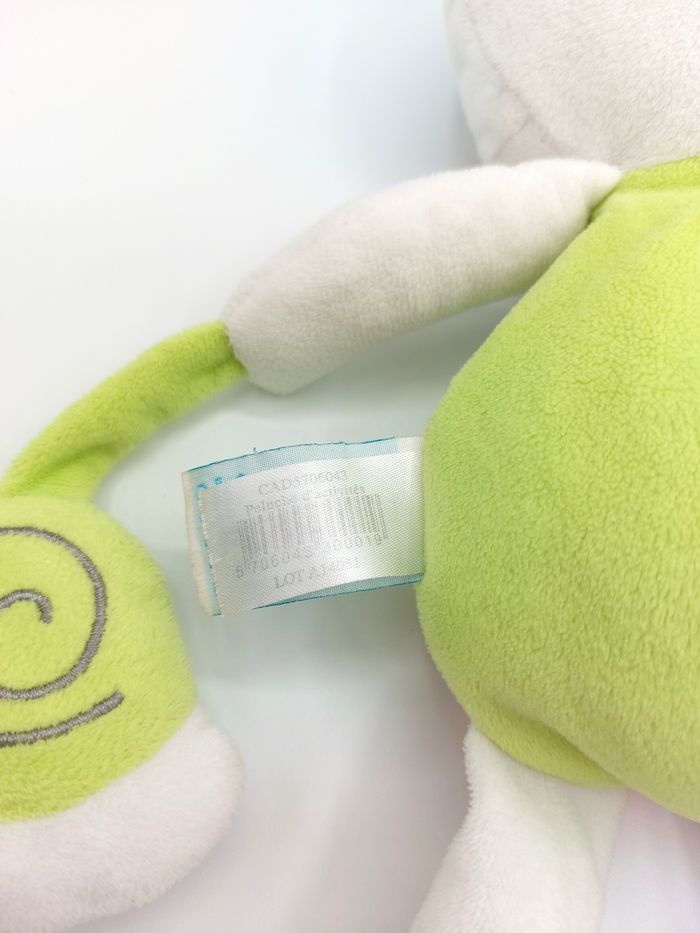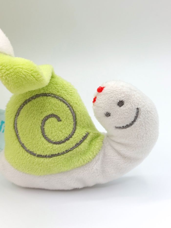 Peluche d’activité doudou chat blanc vert rouge escargot BABY NAT grelot Babynat - photo numéro 5