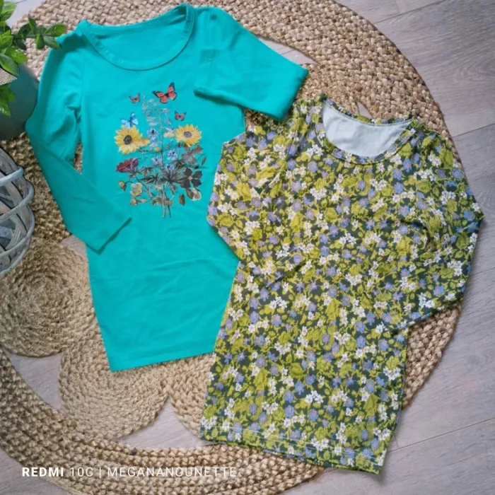 Adorable lot de 2 robes fleuries manches longues pour petite fille de 3 ans / 98 cm 👧✨