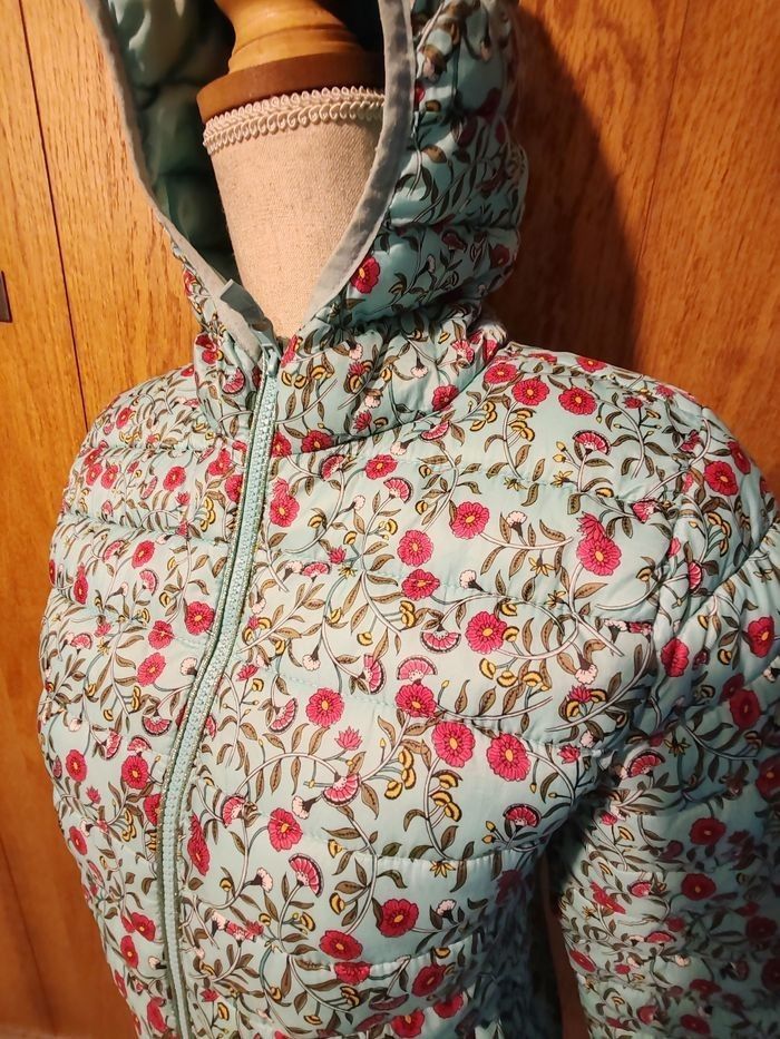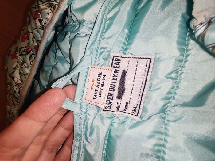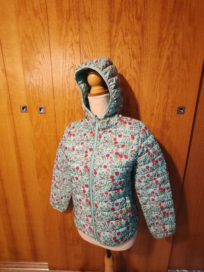Doudoune veste fille tape à l'oeil tao Top pour cette saison Imperméable avec capuche Zipp avec liseré argent Couleur turquoise avec motif floral 9.90 euros Envoi en relais