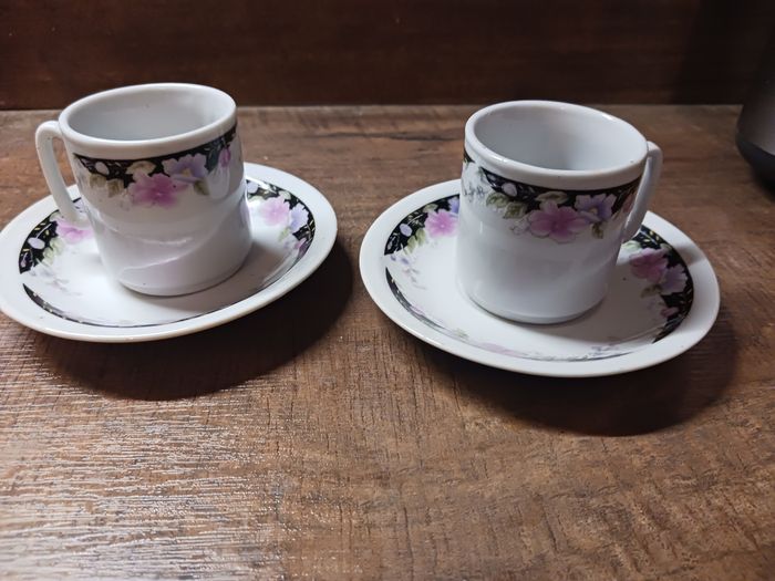 Lot de 2 tasses avec soucoupes blanche et décor fleuri neuves