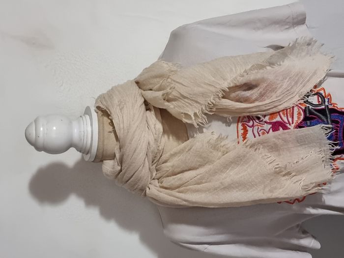 Foulard transparent femme beige avec papillons bruns a peine visibles en motifs long de 160 cm. En très bon état. Envoi rapide et soigné. Négociable.