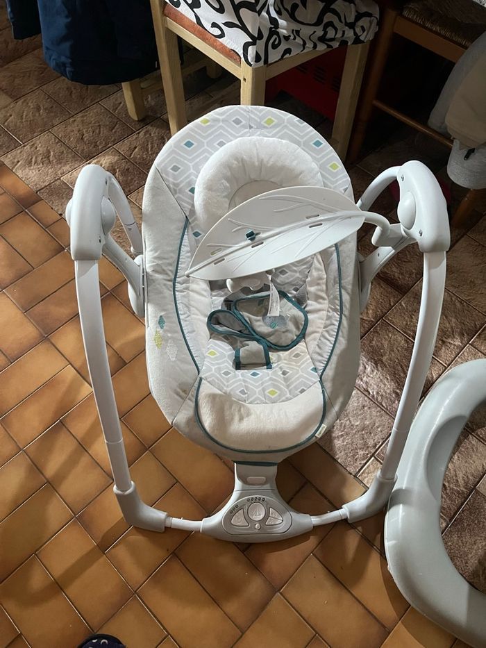 Balancelle pour naissance je ne m’en suis servis de ces 0 a 3 mois peu aller jusqu’à 6 mois Elle a le verrouillage de la balancelle et Musique plus le siege de la balancelle a une option vibration En très bonne état Possibilité de baisser un peu le prix dans la limite du raisonnable