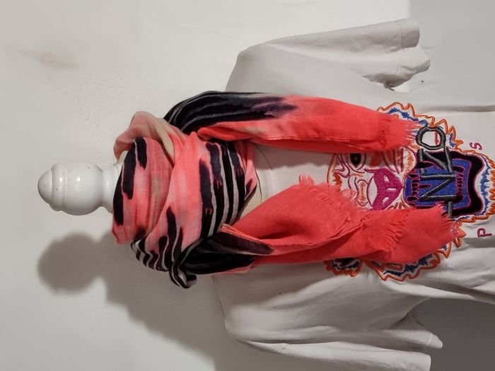 Foulard femme coloré noir, blanc et rose fluo long de 200 cm. En très bon état. Envoi rapide et soigné. Négociable.