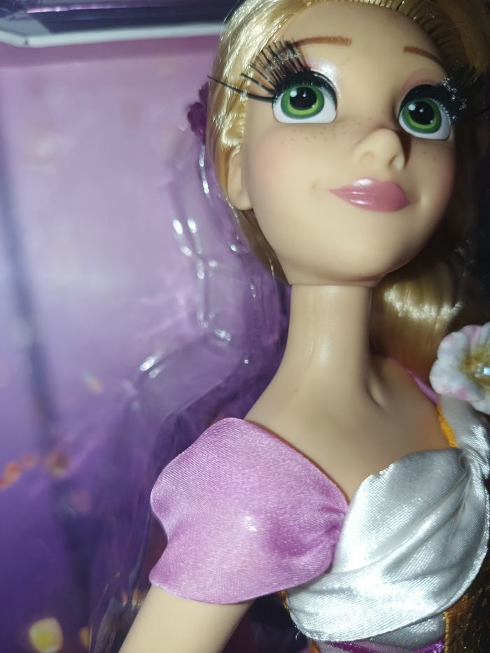Poupée Disney édition limitée raiponce neuve.jamais deboxee. Acheté sur un autre site mais il manque l'élastique au niveau du coup..la poupée est neuve.