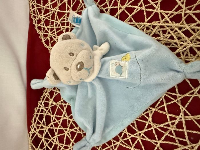 Doudou plat carré ours bleu tortue TEX BABY - photo numéro 1